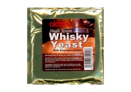 Дрожжи Alcotec Single Strain Whisky обладают способностью к быстрому брожению, за 3 - 6 дней они могут ферментировать сусло, приготовленное из зерновых, ведь это их непосредственное назначение. Для этого в их составе есть необходимый для этого фермент (amylogycosidase), расщепляющий цепные связи в олигосахаридах, декстринах, обеспечивая расщепление крахмала до глюкозы, легко поддающейся воздействию дрожжей. Крепость дистиллята достигнет 12%.
