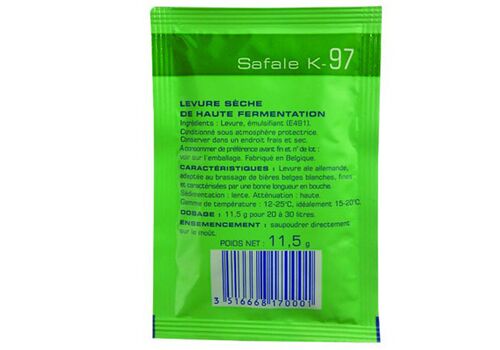 Fermentis K-97 - Дрожжи верхового брожения, немецкий элевый штамм дрожжей отобранный благодаря своей способности формировать плотную пенную шапку в процессе брожения. Подходит для варки элей с низким содержанием эфиров, а также может быть применён для производства бельгийских сортов пшеничного пива. Более низкая сбраживающая способность данного штамма позволяет варить пиво с более длительным вкусовым ощущением.