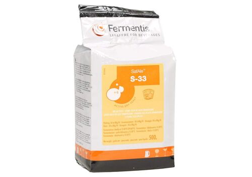 Fermentis S-33 - Дрожжи верхового брожения с нейтральным ароматическим профилем. Общепризнанный многофункциональный штамм, отличающийся устойчивостью в хранении и стабильностью результата. Этот штамм позволяет получить изумительные ароматические профили, а также идеален для производства специальных сортов пива (бельгийский сорт пшеничного пива, траппист и тд).