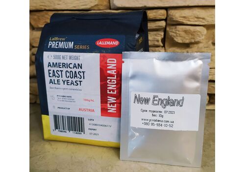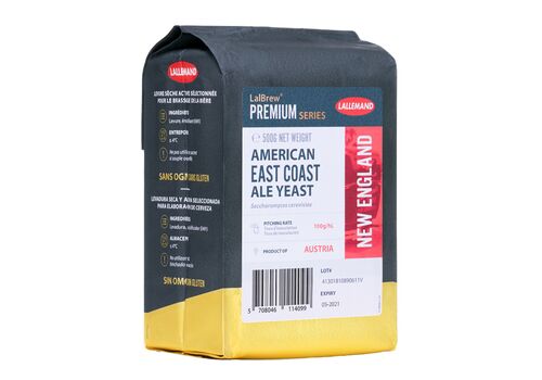 Lallemand American East Coast (New England) - этот штамм создан специально для получения производить уникальный профиль сложных фруктовых эфиров, которые обязательны для сортов пива с Восточного побережья. Ферментация будет создавать тропические и фруктовые эфиры, особенно косточковых фруктов, таких как персик. Благодоря выразительному ферменту β-глюкозидазы, Lallemand American East Coast может способствовать биотрансформации хмеля и тем самым усиливать вкус и аромат хмеля. Lallemand American East Coast демонстрирует аттенюацию от средней до высокой, что делает этот штамм идеальным выбором для эля в стиле East Coast.