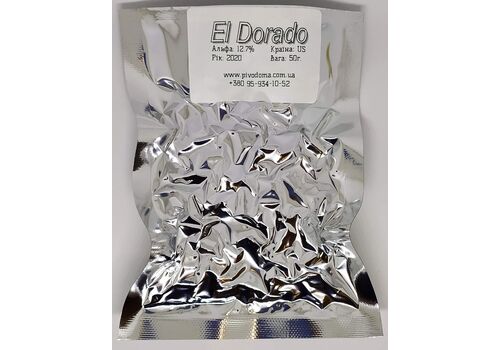 Хмель El Dorado (Эль Дорадо) - является относительно новым хмелем с исключительными ароматическими характеристиками и высоким содержанием альфа-кислот. Это хмель двойного назначения с исключительным ароматическим качеством и высокой альфа-кислотой. El Dorado отображает фруктовые ноты, со вкусом тропических фруктов, а так же имеет грушевый и арбузные ноты.