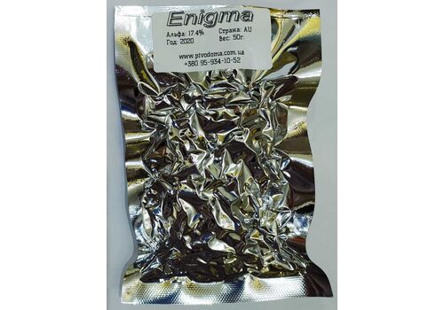 Хмель Enigma (Энигма) является новейшим ароматическим сортом хмеля в семействе хмелепродуктов Австралии. Типичные описания для него не подходят, так как официальные дегустации дали ему интересные термины: от винограда "Пино Гри", "малины" и "красной смородины», до дыни-канталупа и легких тропических фруктов, что в совокупности придает хмелю неудержимые привлекательные вкусы и ароматы!