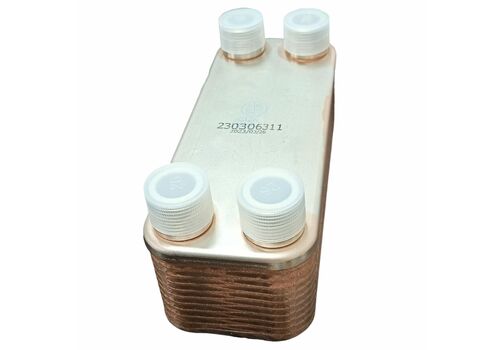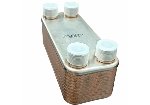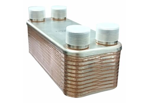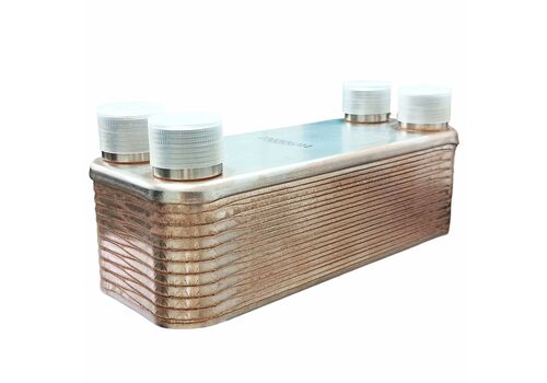 20 пластин из нержавеющей стали, спаяны между собой чистой медью. Сусло, проходя между пластинами, отдает тепло воде, протекающей по соседним каналам. Ребристая форма увеличивает площадь контакта и увеличивает эффективность охлаждения. Базовый инструмент для домашнего пивовара, который стремится к идеальным результатам.