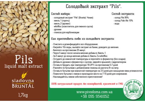 LME "Венское" - набор для приготовления пива на базе экстракта "Pils" (производство Bruntal Чехия). Легкое солодовое тело и приятная хмелевая горечь.
